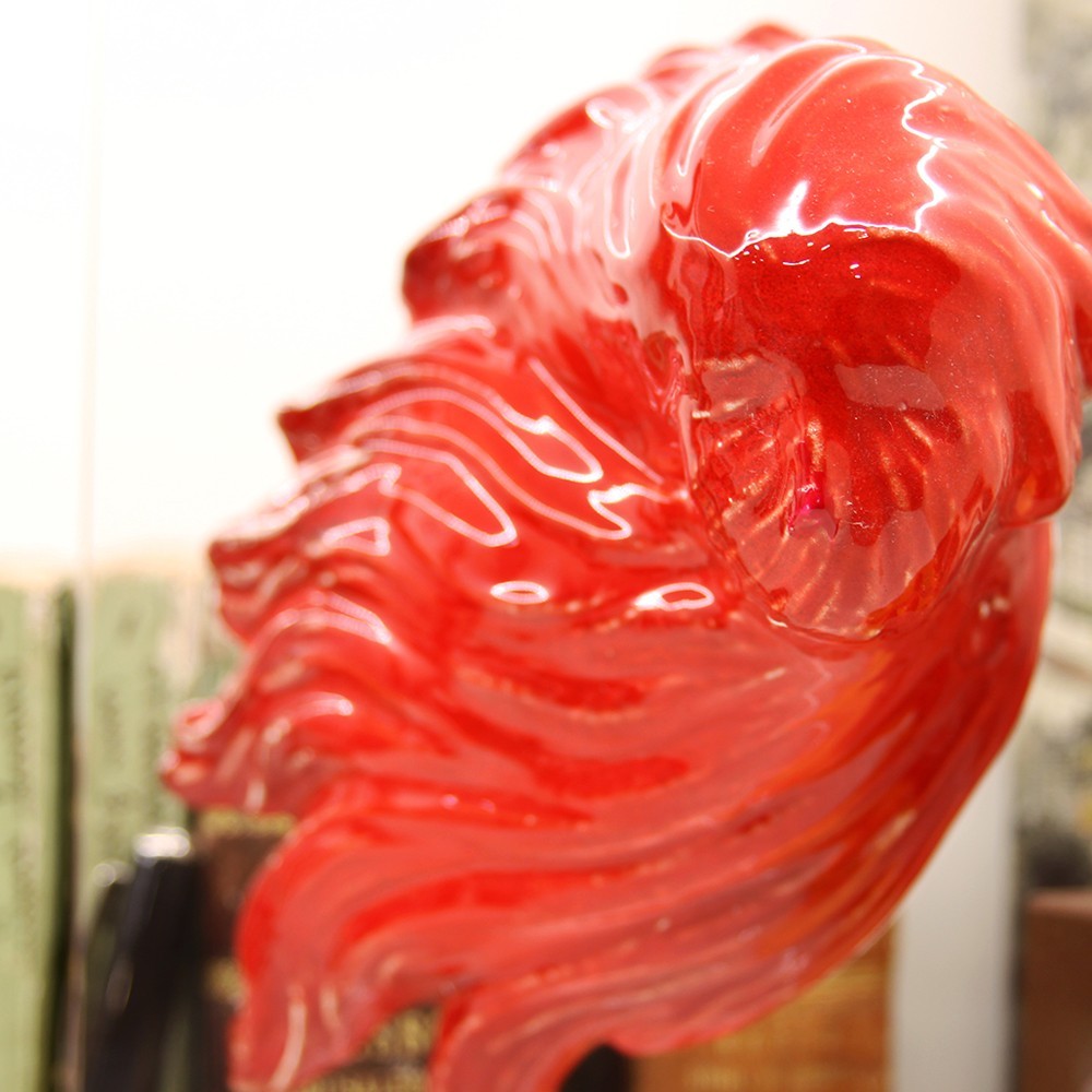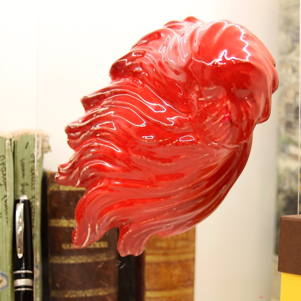 La Bella M'Briana di Macrì rossa esprimere carattere e mistero. È un oggetto portafortuna artigianale che si rifà al mito della protettrice della casa tanto amata dai napoletani. Ottima come idea regalo, è una scultura in porcellana smaltata davvero unica. H. 16,5cm - L. 13cm - P. 9cm
