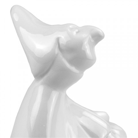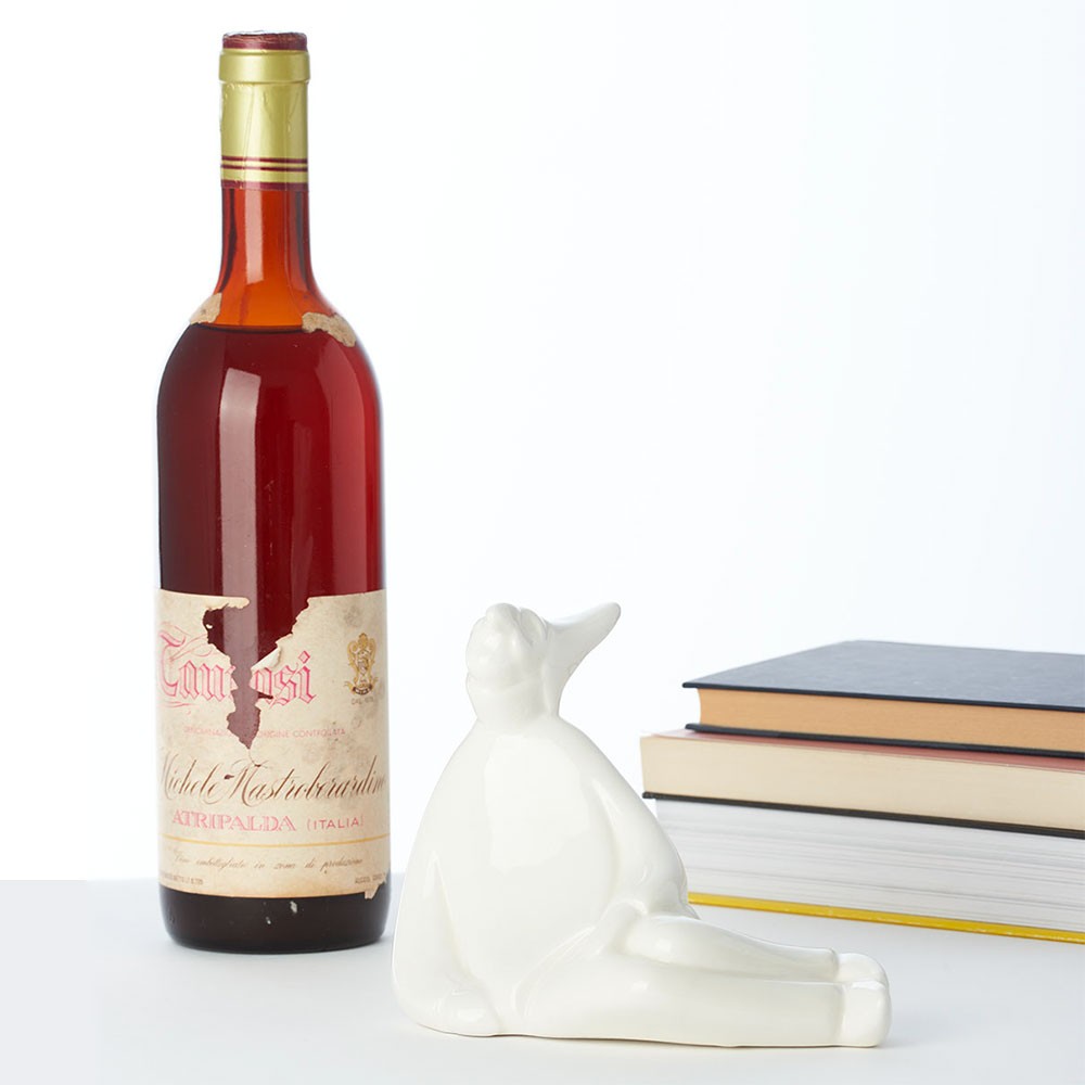 La scultura moderna di Macrì, Novus – La Serenità, raffigura un serafico Pulcinella in terracotta bianca smaltata. Perfetta come idea regalo home decor.