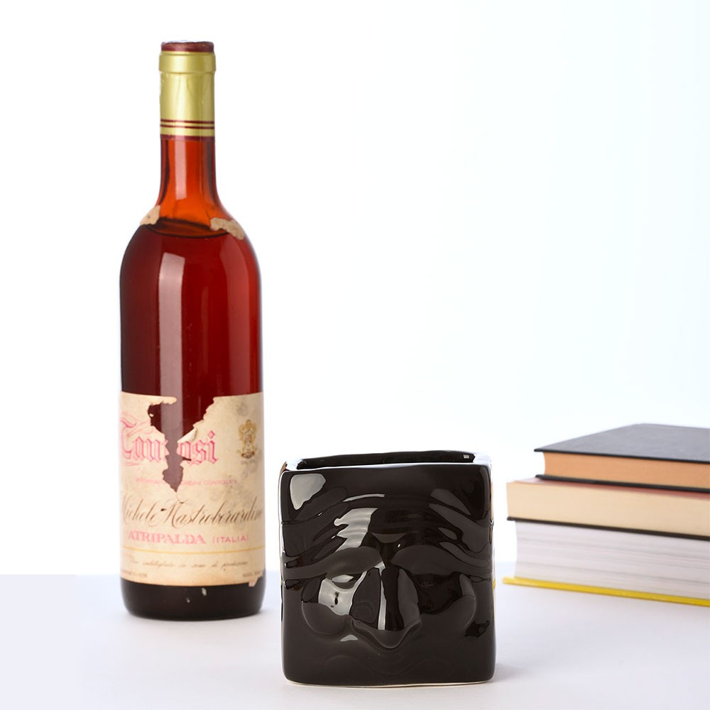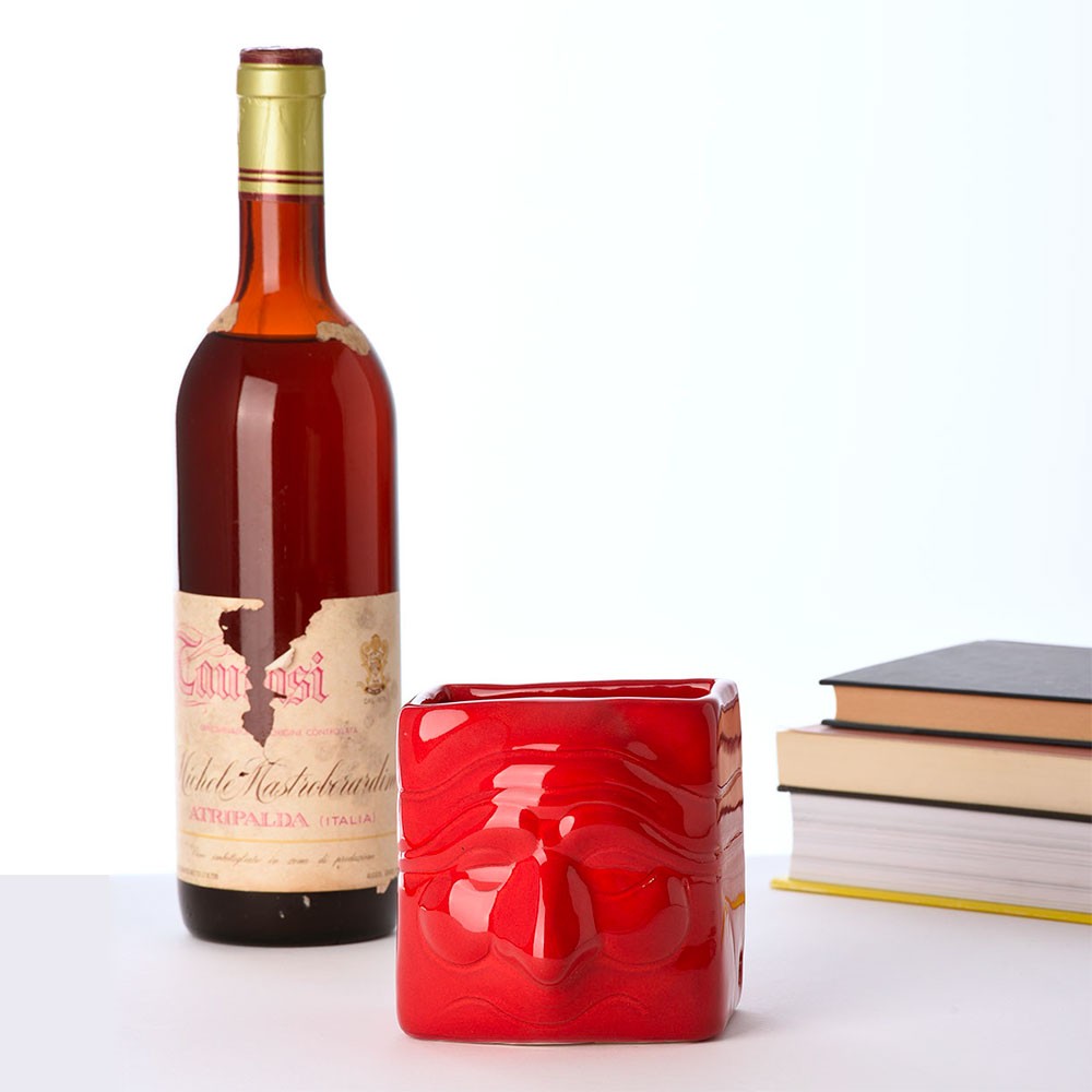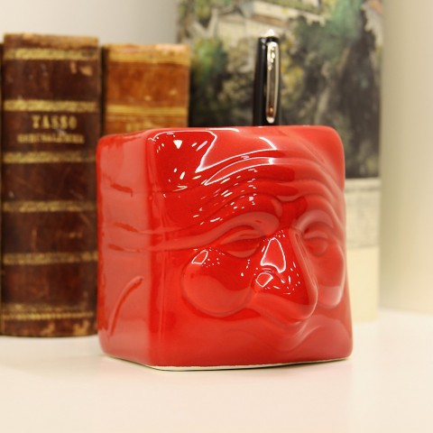 The terracotta pen holder, designed by Macrì, is modeled and glazed by second-fire. Represents the traditional Pulcinella mask, interpreted in a contemporary way. It’s contained in an elegant craft case.