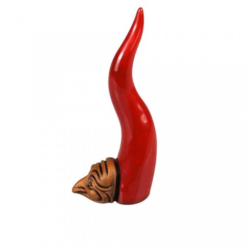 The red horn with Pulcinella mask is an ideal superstitious object for the desk, as a simple piece of furniture or paperweight. It is also a unique gift idea.