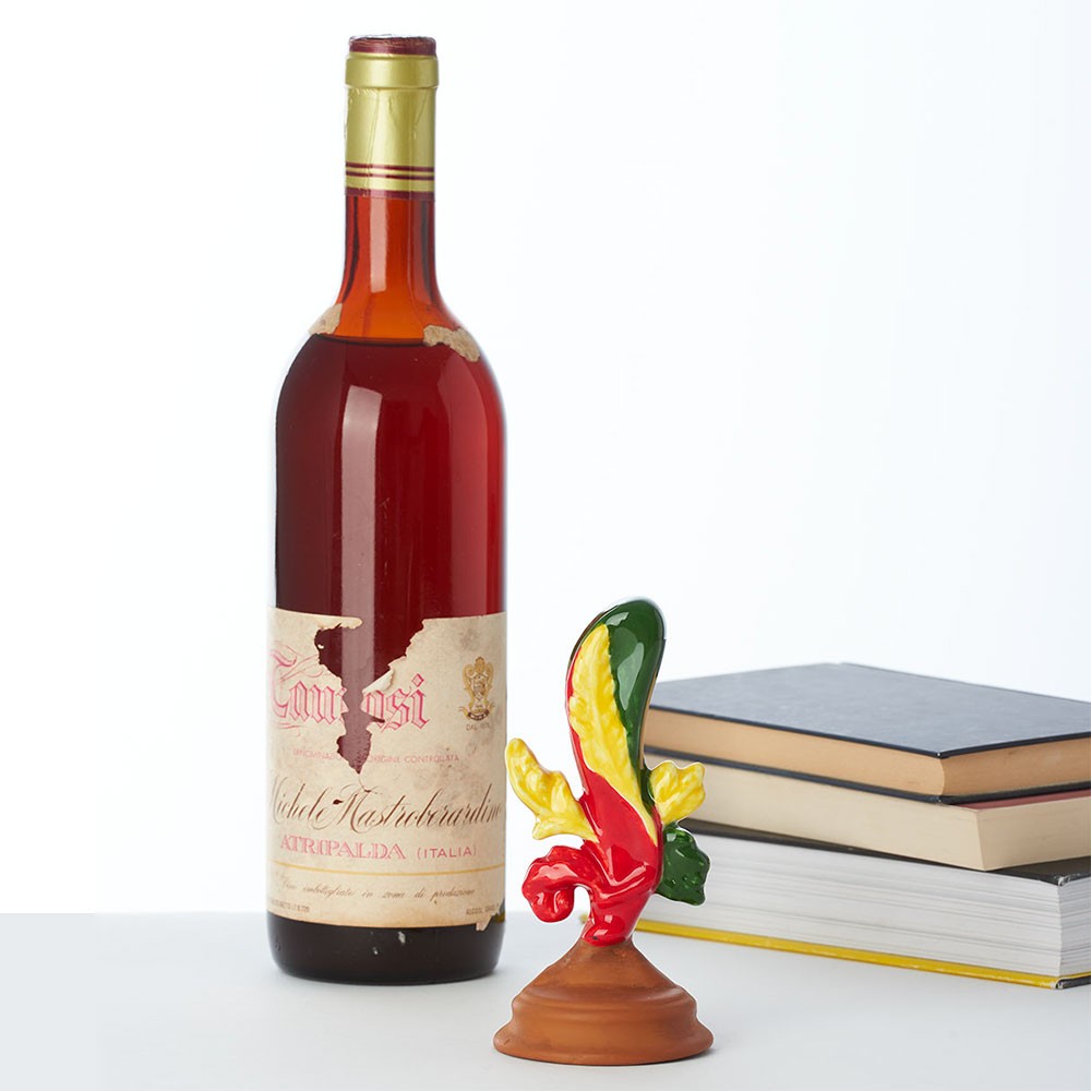 L’Asso di Bastoni disegnato da Macrì viene prodotto in terracotta, modellato e dipinto completamente a mano. E’ contenuto in un elegante astuccio artigianale. L'Asso di Bastoni è considerato il principio dell'azione del potere e rappresenta il rispetto delle tradizioni. E' un dono positivo, augura guadagni, creatività ed energia. Dimensioni: H. 13,5cm - P. 7cm - L.7cm