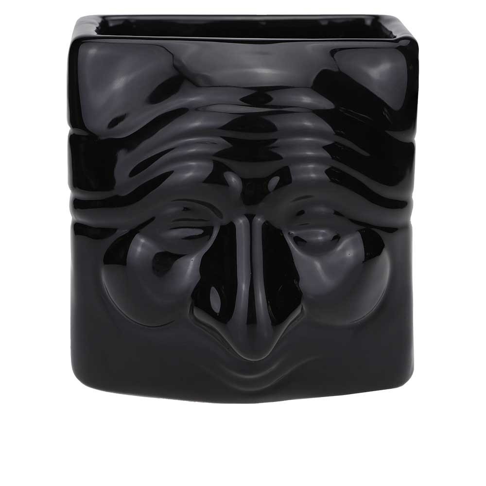 Il Portapenne Pulcinella Nero in terracotta disegnato da Macrì viene modellato e smaltato a secondo fuoco. Rappresenta la tradizionale maschera di Pulcinella, interpretata in chiave design.