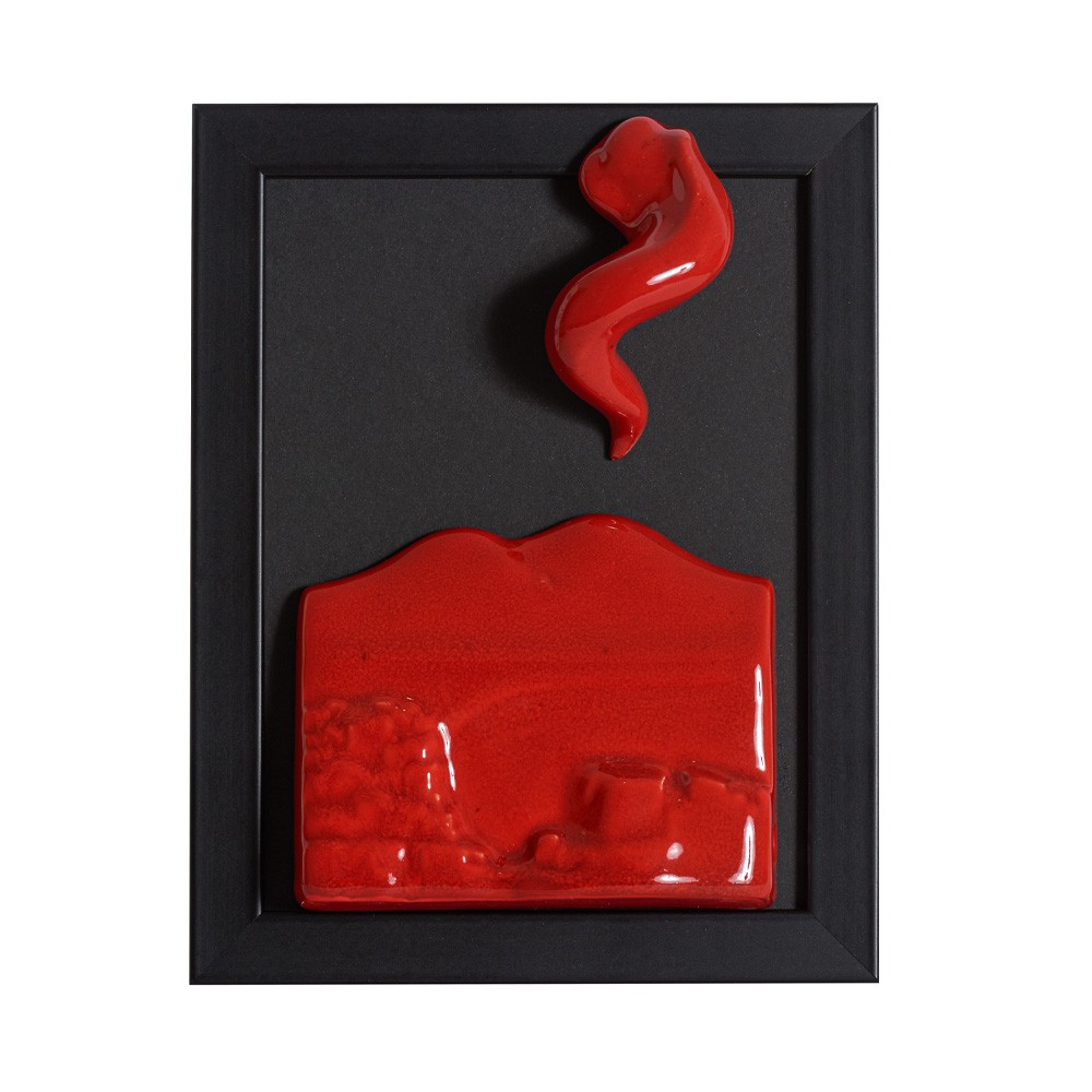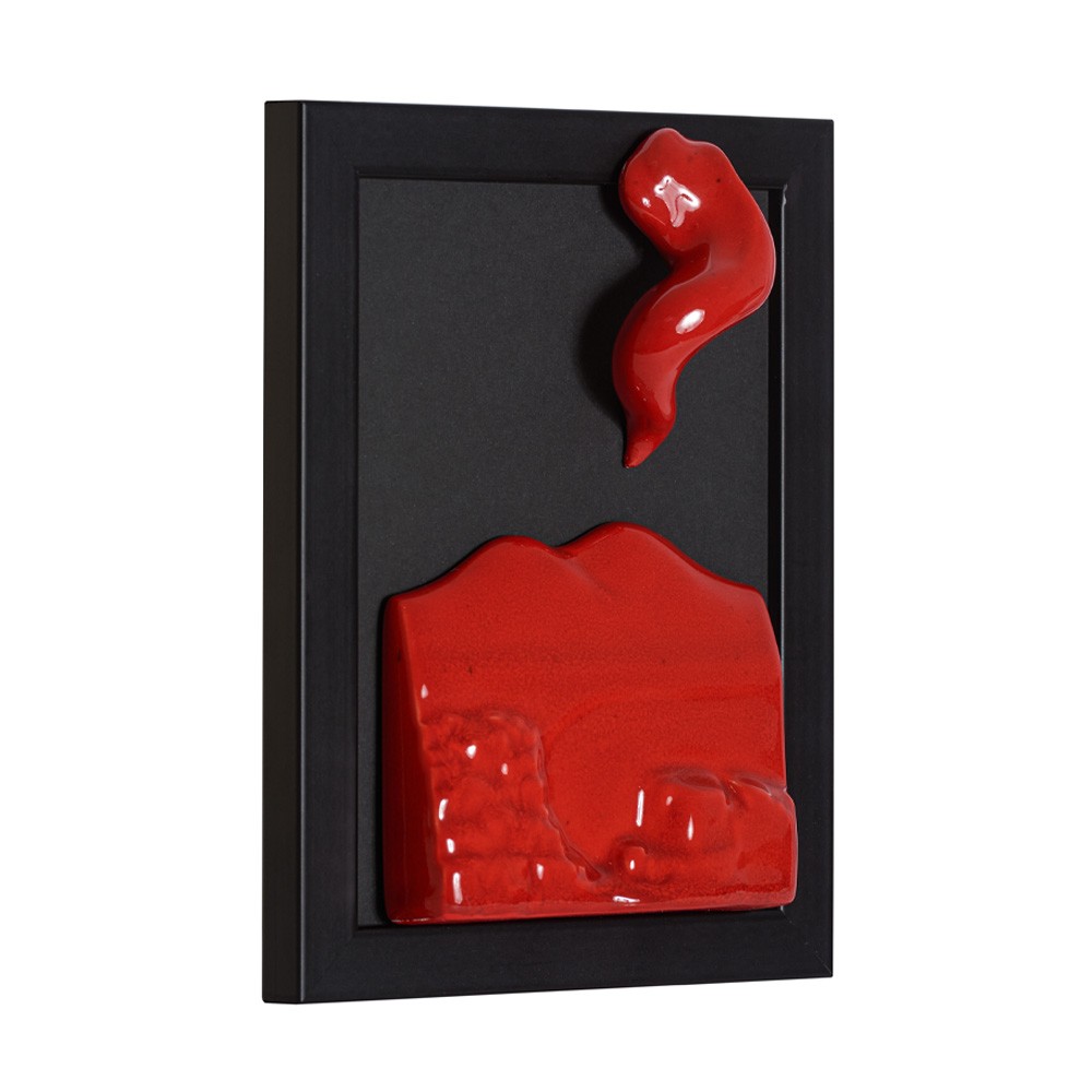 Cornici in legno, con piastra in terracotta realizzata a mano e smaltata a secondo fuoco