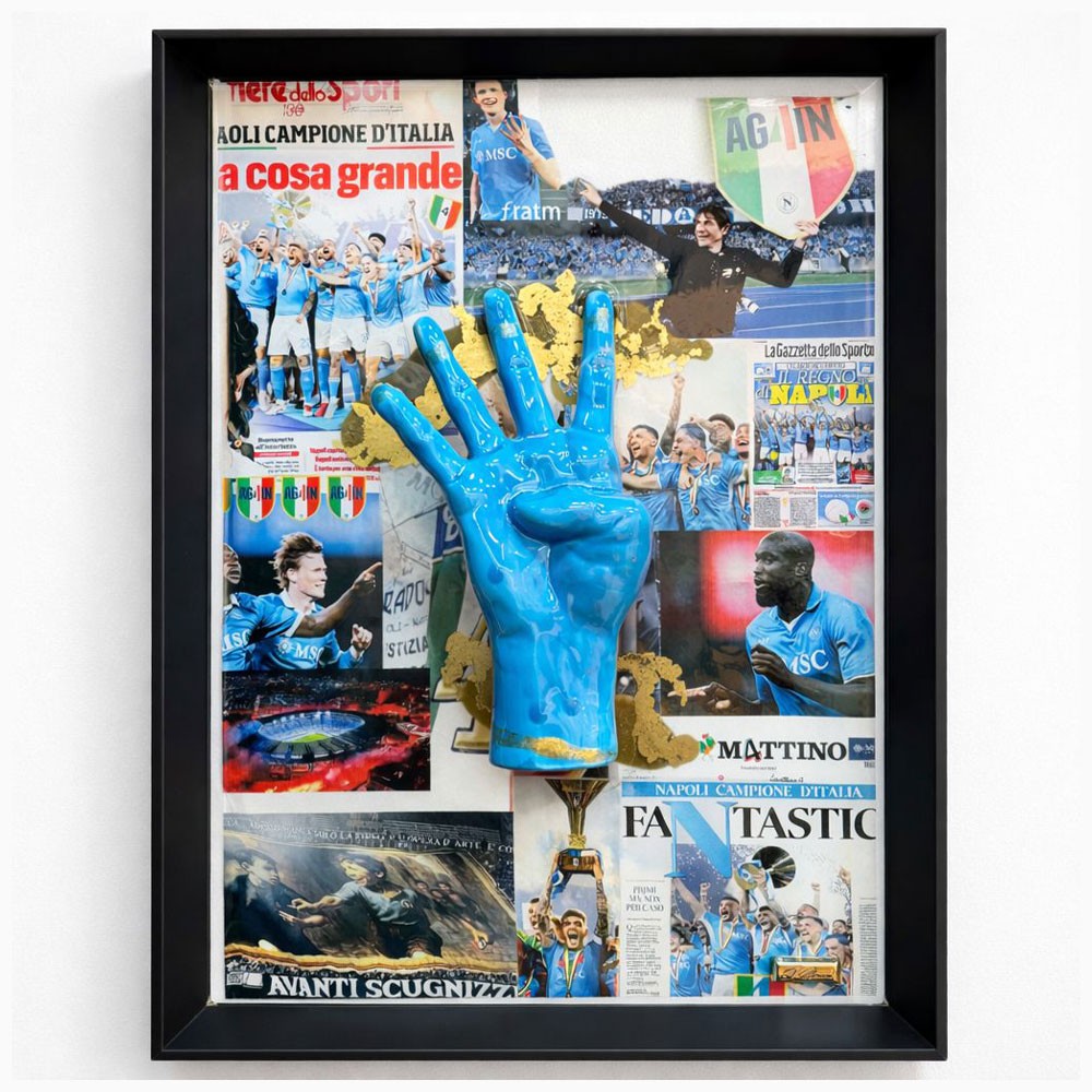 Quadro celebrativo in edizione limitata, interamente realizzata a mano. Quest’opera rende omaggio allo storico quarto scudetto del Napoli. Un gesto che racconta l’orgogliosa appartenenza a questa città e a questi colori. Fanno da sfondo l’energia e la passione che hanno accompagnato questa indimenticabile stagione.