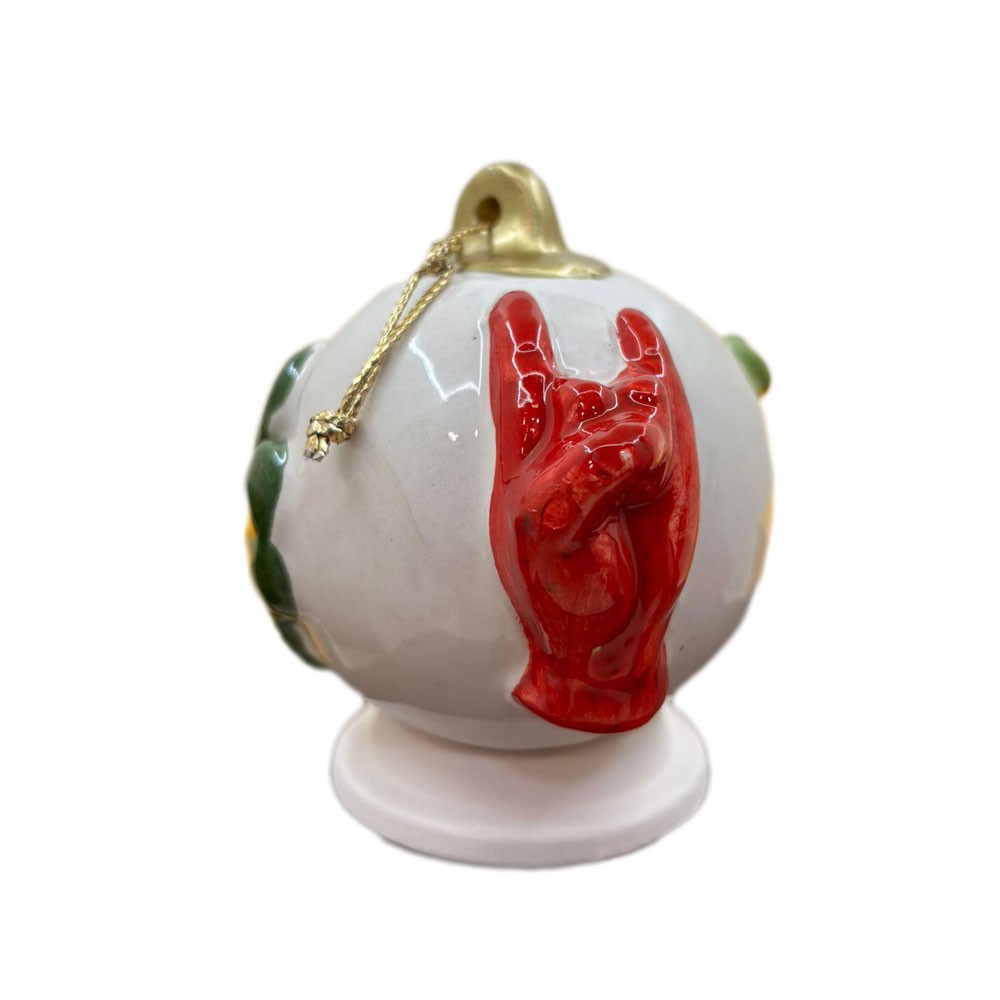 Nat è una raffinata pallina di Natale in ceramica artigianale, realizzata con cura dai Maestri ceramisti Macrì. Un piccolo capolavoro moderno che unisce tradizione e design, perfetto per arricchire l’albero o per diventare un’originale idea regalo dal gusto autentico e ricercato.